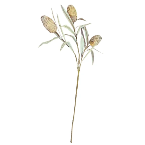 Rama artificial de flores en tonos beige y verde grisáceo, perfecta para aportar un toque natural y elegante a cualquier espacio. Ideal para la decoración de interiores.
