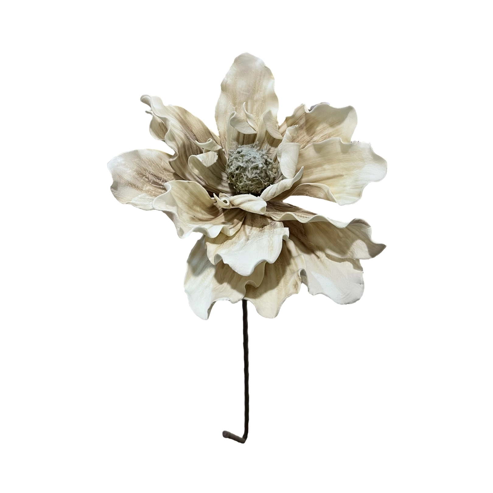 Flor artificial en tonos crema y marrón, con pétalos grandes y elegantes, ideal para decorar.