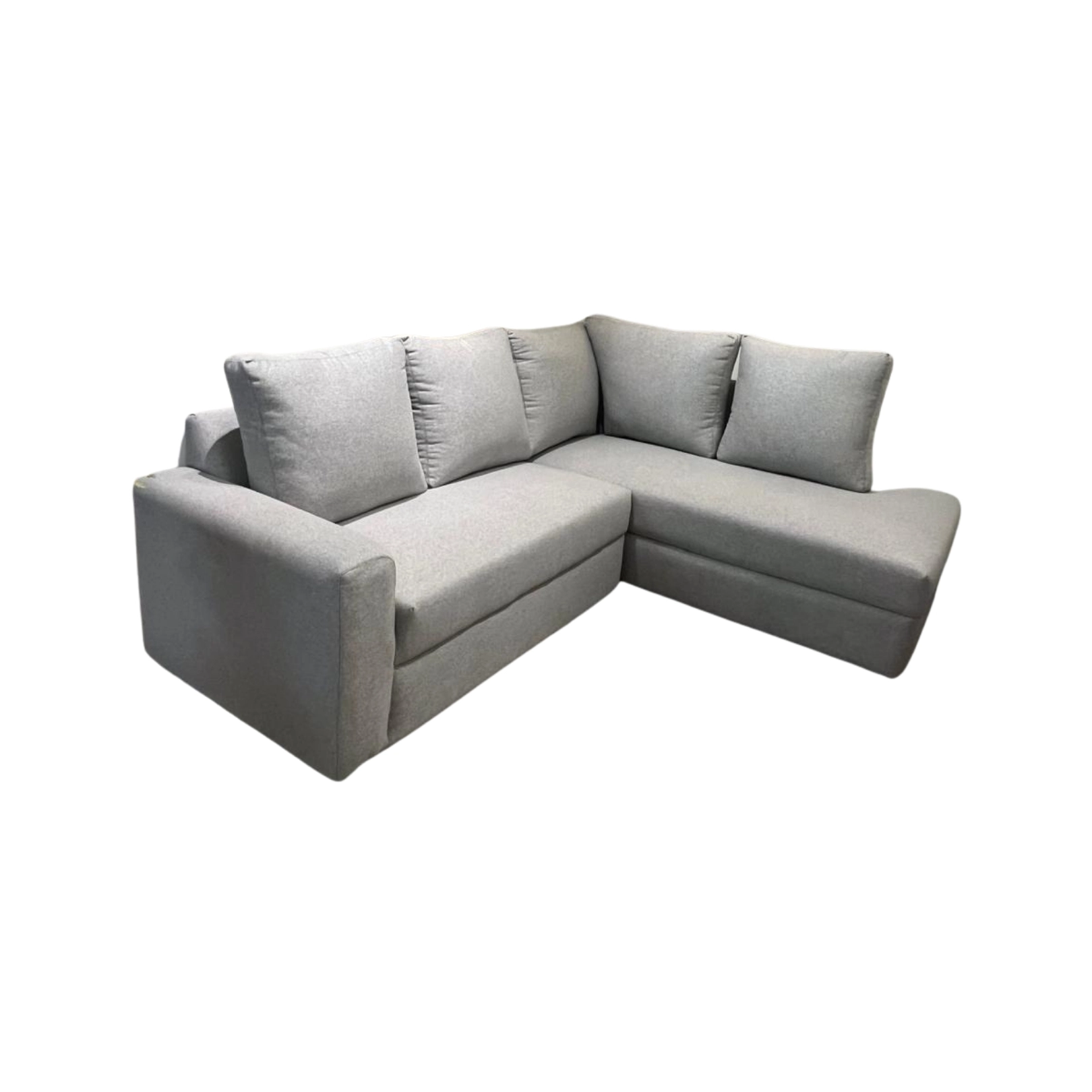 Sala Malaga color gris claro con cojín cuadrado beige suave. Ideal para un ambiente moderno y acogedor.